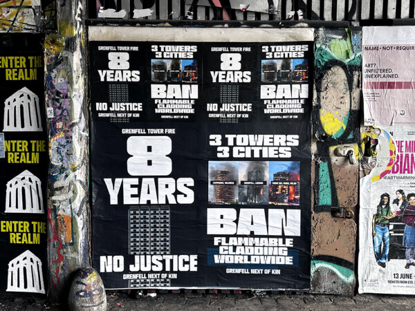 Grenfell 8 years No Justice/Ban Flammable Cladding Flyposted Posters Augmented RealityIdentity DesignPostersStreet Interventions