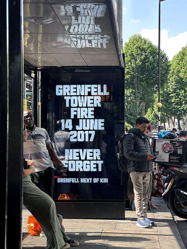 Grenfell Shepherd’s Bush Roundabout and Bus Stops Takeover 4 Identity DesignPostersStreet Interventions