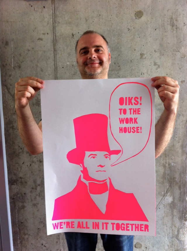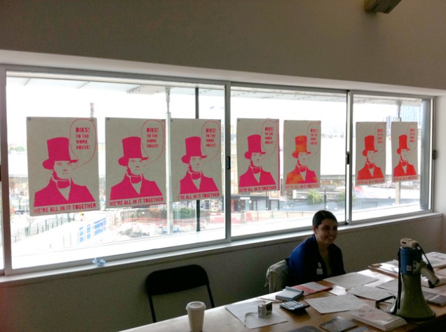 I was invited by Printbike to come make some hand-made screen printed posters ‘live’ at an event called Adhocracy at the Rich Mix centre in Bethnal Green. Here’s the results from the weekend.