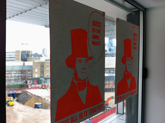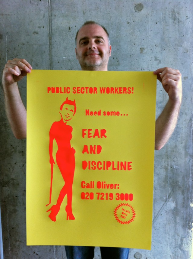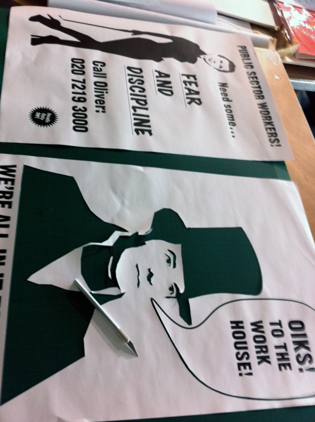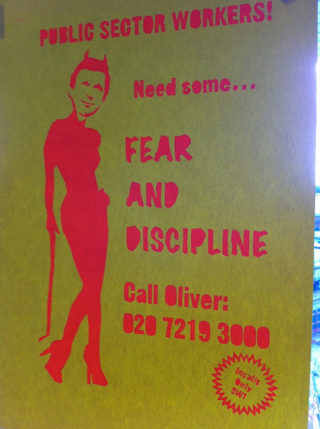 Note: The yellow poster makes reference to Tory MP Oliver Letwin’s comments about Public Sector workers.
