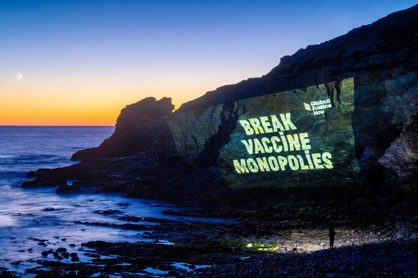 Break Vaccine Monopolies Video Projection in Cornwall during the G7 Summit for Global Justice Now.