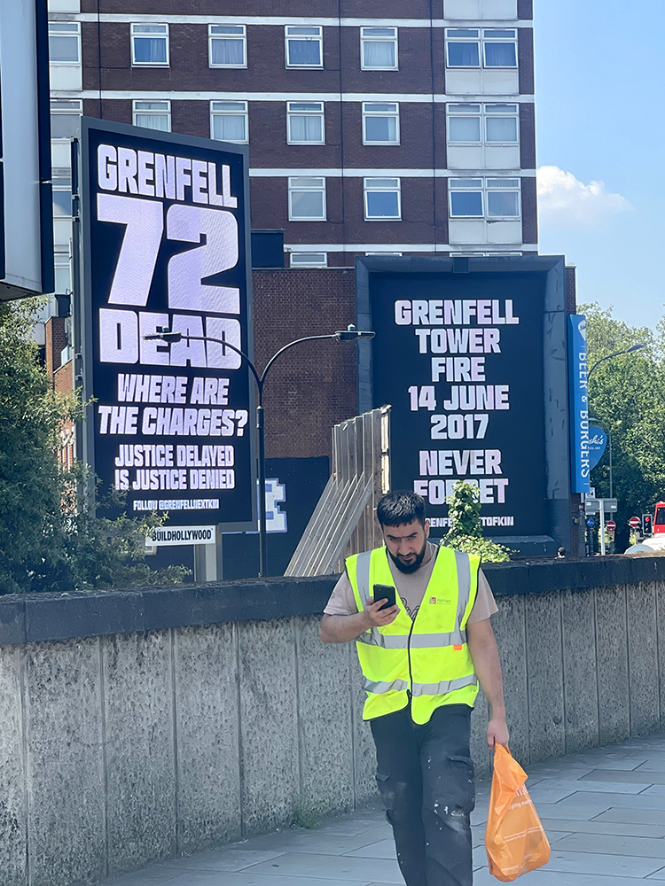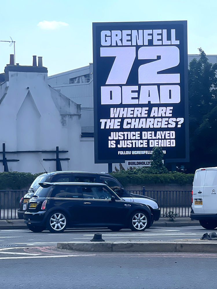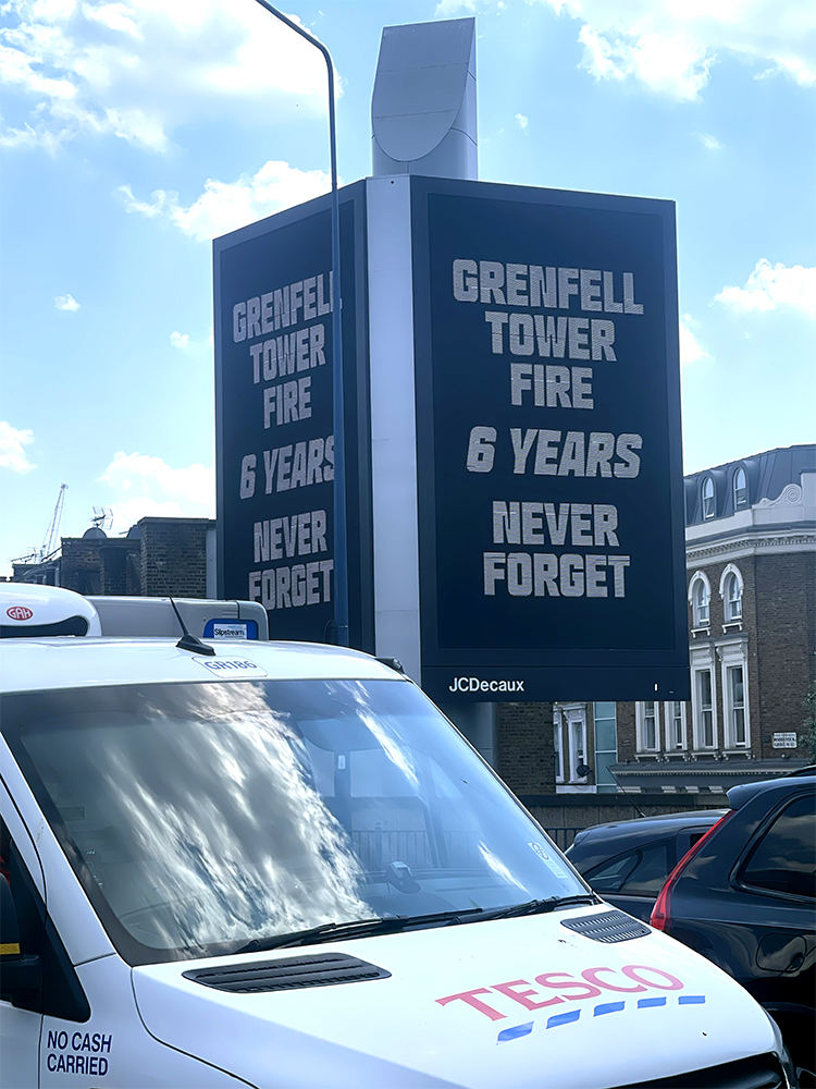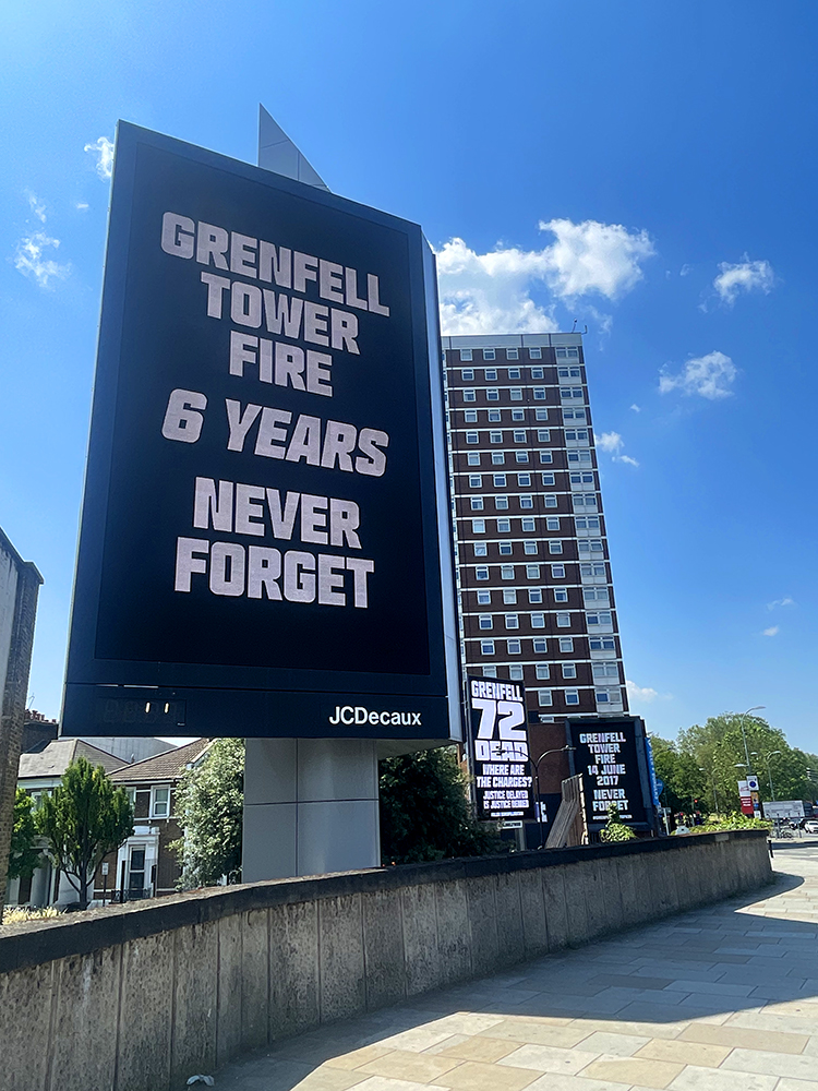 On the 6th anniversary of the Grenfell Tower Fire, working with Grenfell Next of Kin and Build Hollywood and other Ad Space companies a complete takeover of all the Billboard space on Shepherd’s Bush Roundabout near the tower and with a huge audience as it’s one of the busiest roundabouts in London.