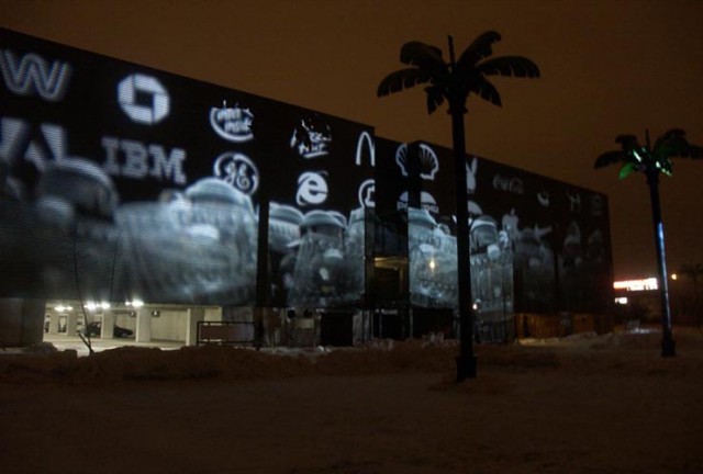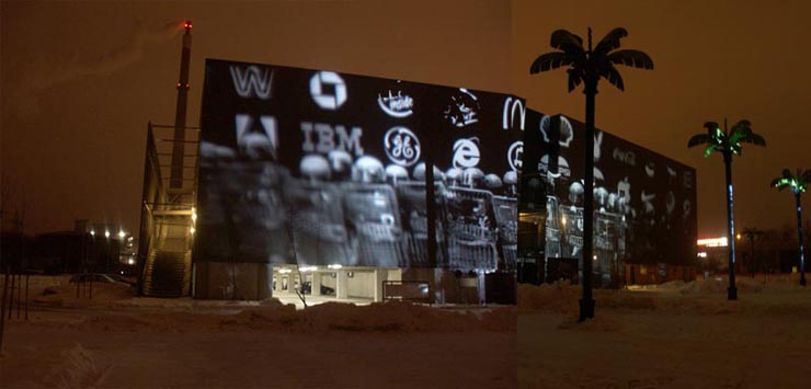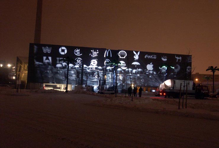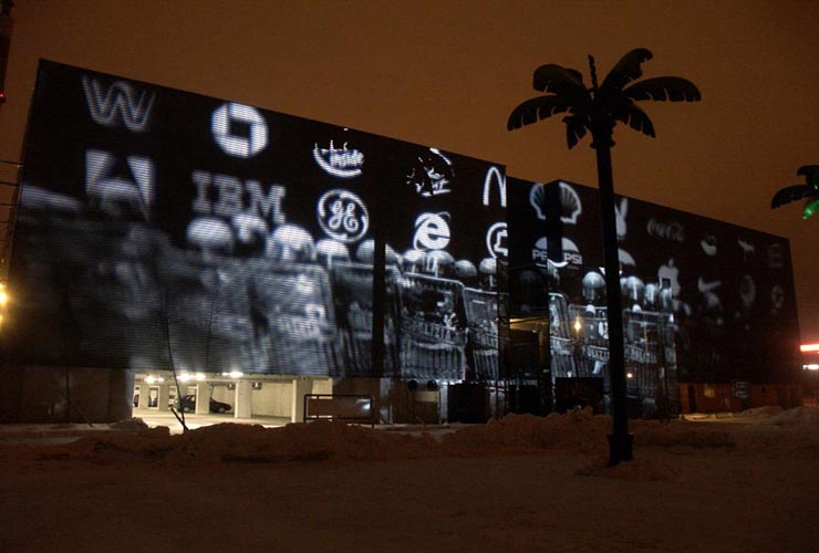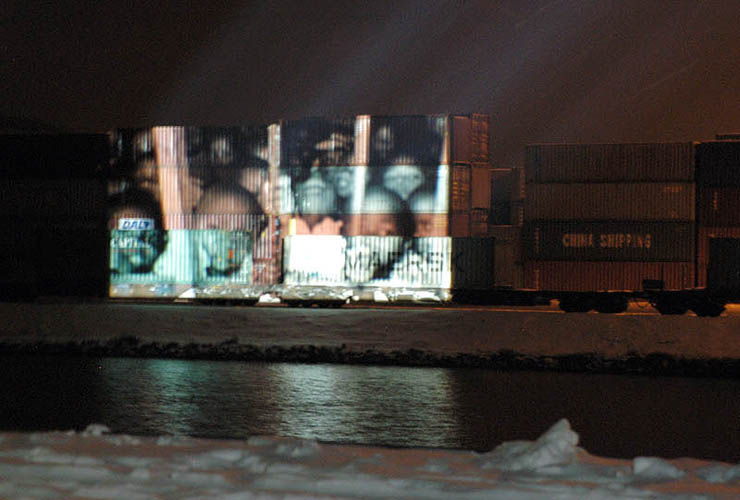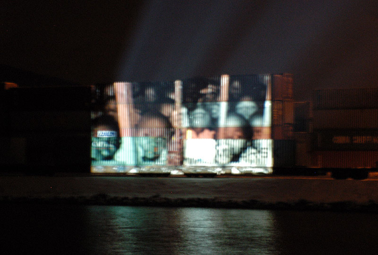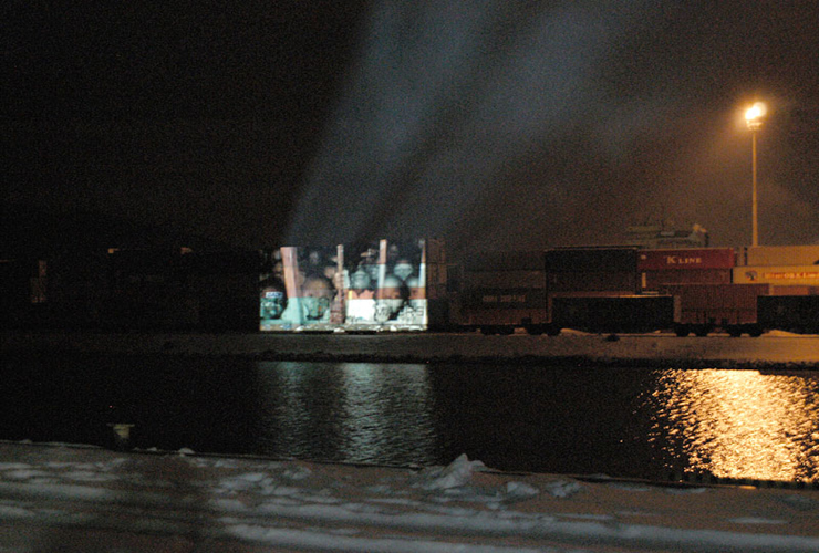 A week long series of HUge and MObile projections using Europes largest slide projector on the back of a truck. This was part of the ‘Interfacing Realities’ projects set up by V2 of Rotterdam, produced in collaboration with Ars Electronica and led by artist Rafael Lozano-Hemmer. The project was published in the book ‘Making Art of Databases’ in 2003. These are four of the projections I produced during the week.