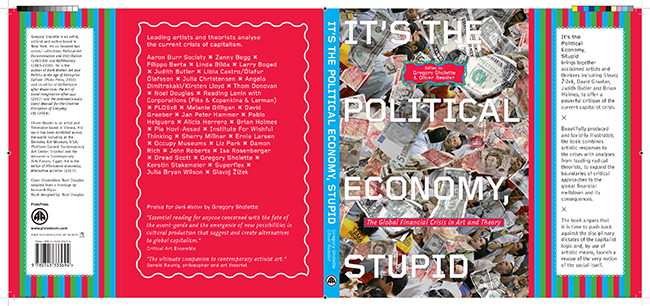 Book Design for It’s the Political Economy, Stupid an exhibition curated by Gregory Sholette and Oliver Ressler, this book acts as a guide to the work and extends the themes of the show with other essays by bringing together internationally acclaimed artists and thinkers, including Slavoj Žižek, David Graeber, Judith Butler and Brian Holmes, to focus on the current economic crisis in a sustained and critical manner.