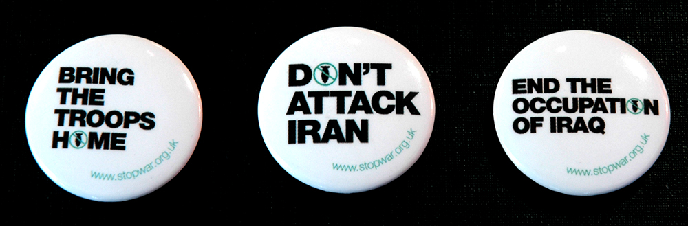 3 badge design for the Stop The War Coalition
