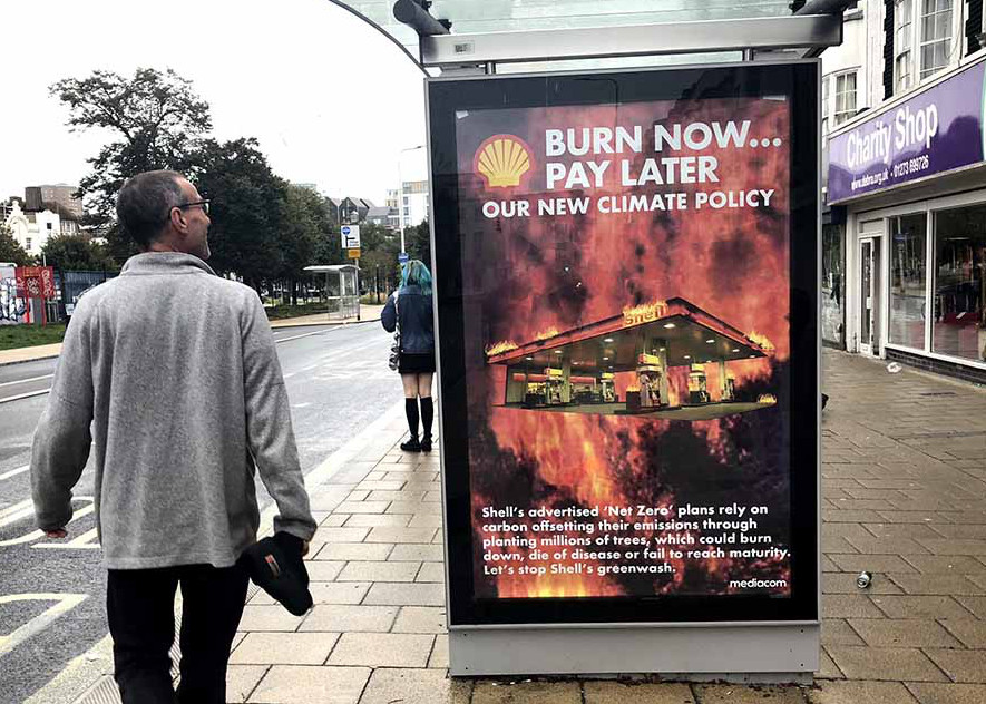 Leading agencies were targeted over their role in the climate crisis, as spoof ads installed without permission linked Ogilvy, MediaCom, VCCP and others with their high carbon clients such as Shell, BP, Jaguar Land Rover and British Airways.