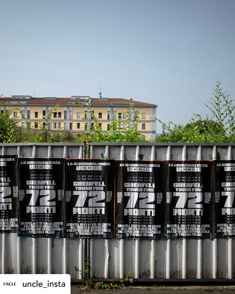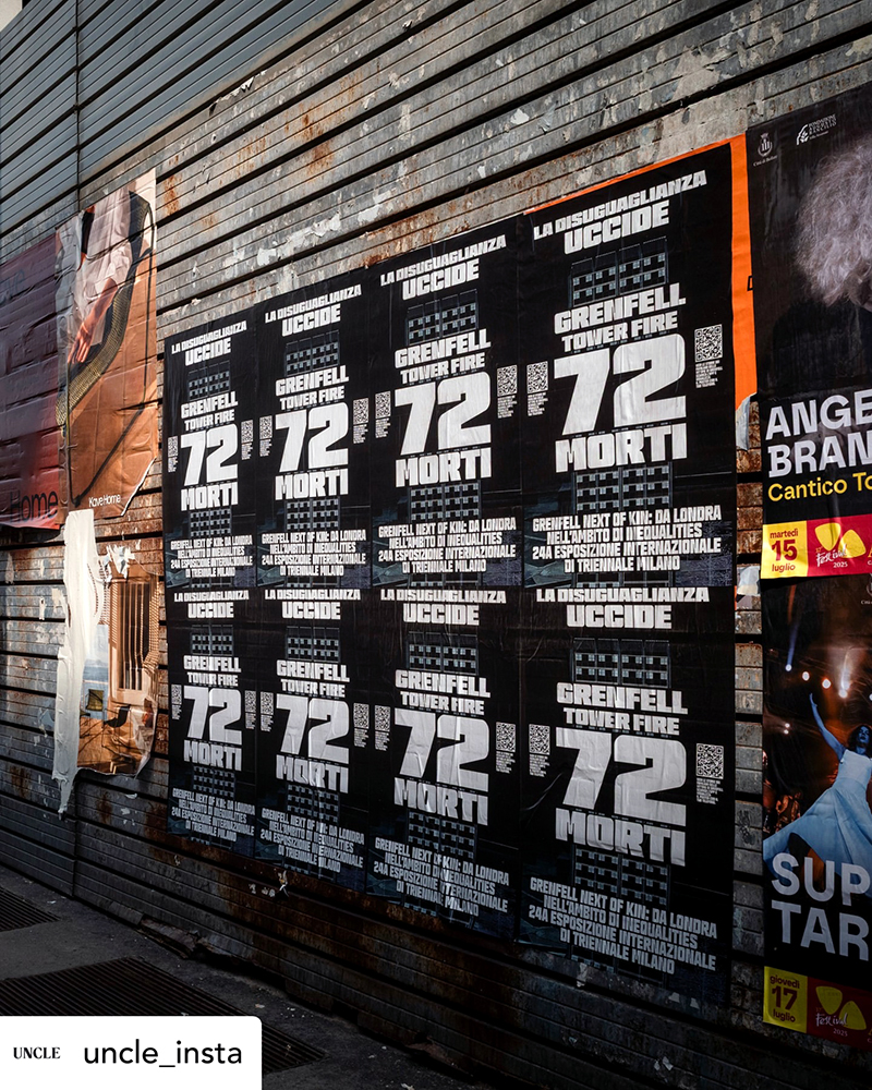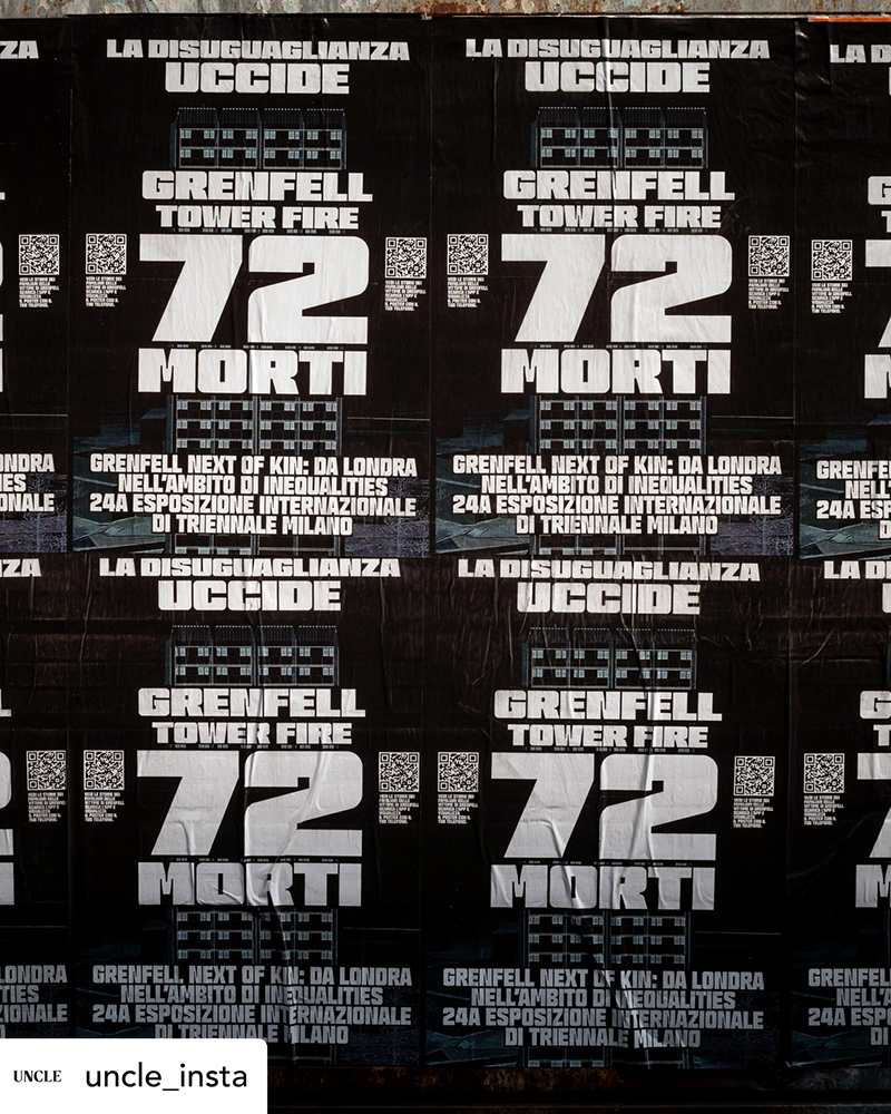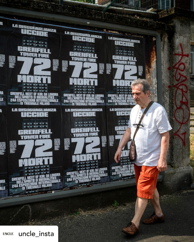 I did an interview with the MAN FROM UNCLE Agency, entitled, Grenfell Next of Kin: 8 Years On with Noel Douglas to conicide with a flyposting campaign in Milan to promote the Grenfell: Total Systems Failure Installation at the Milan Trienalle. The Poster features an AR layer telling the stories of three of the Next Of Kin, ‘The Father’, ‘The Sister’ and ‘The Husband’.