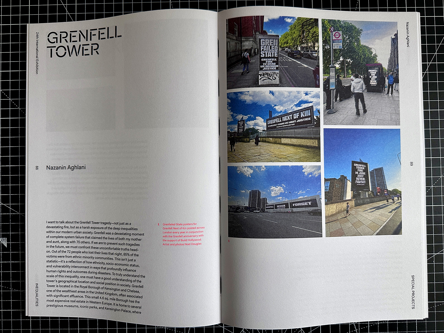 Grenfell Next Of Kin work documented in the catalogue for the Milan Triennale.