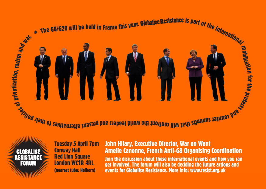 Leaflet design for Globalise Resistance mobilising meeting for the G8